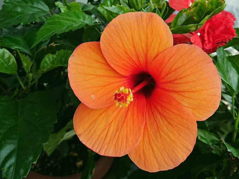 バルコニー/ベランダ,ハイビスカス サマーブリーズ ハッピーオレンジ,ハイビスカス咲きましたの投稿画像