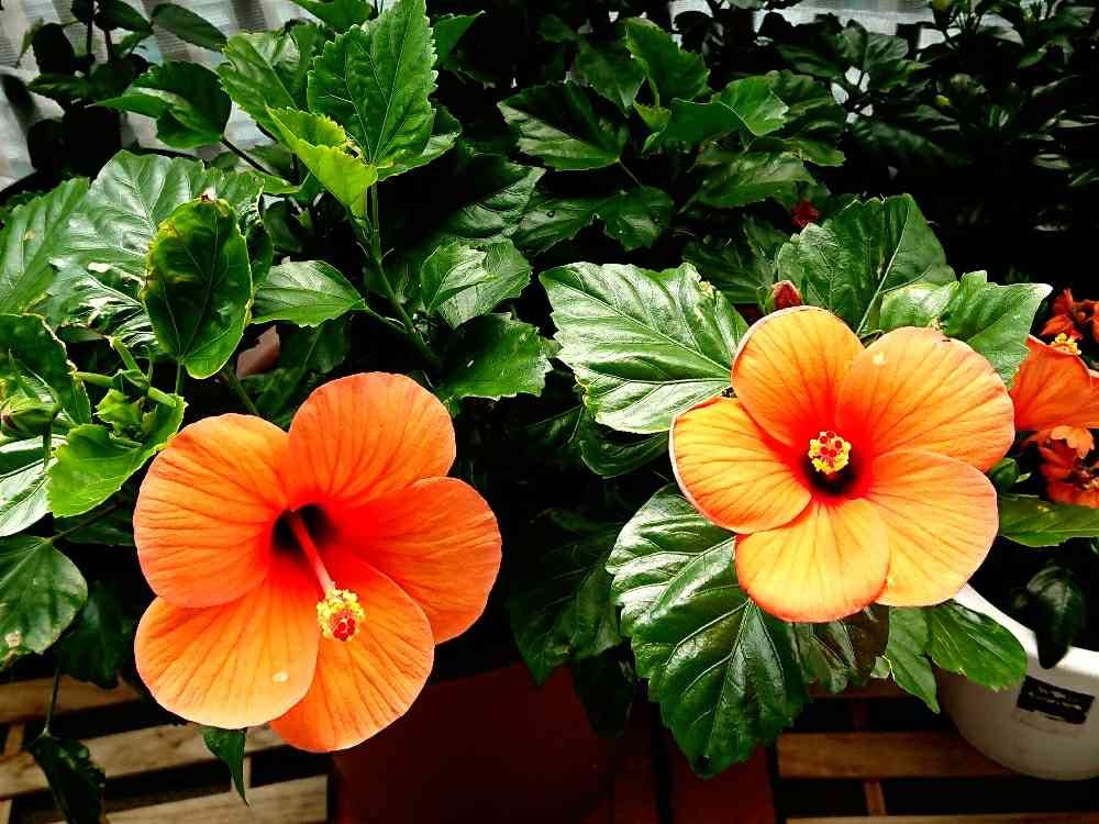 バルコニー/ベランダ,ハイビスカス サマーブリーズ ハッピーオレンジ,ハイビスカス咲きましたの投稿画像