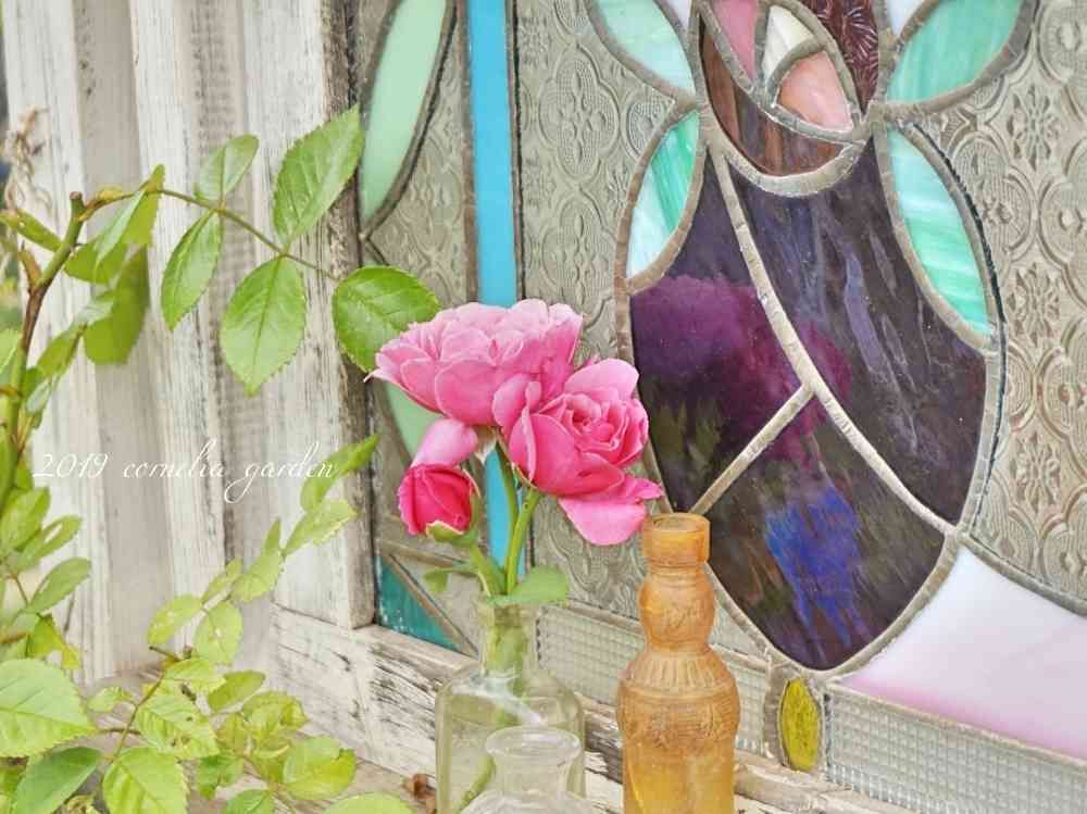 ステンドグラスに薔薇🌹が写ってる~💓 素敵だわ~💓