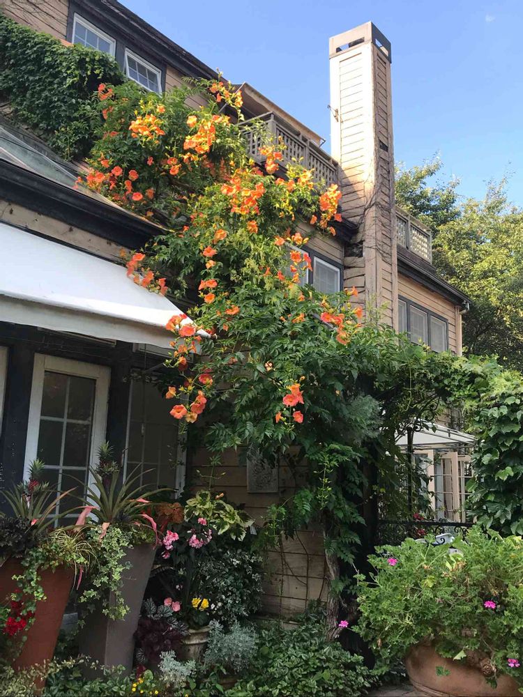 このガーデンのオーナーさんの家(エントツある方)は表玄関からして、うっとりでした😆夕方渋い紳士が、長〜い生ホースを伸ばし水まきされる姿がイキでした😊
