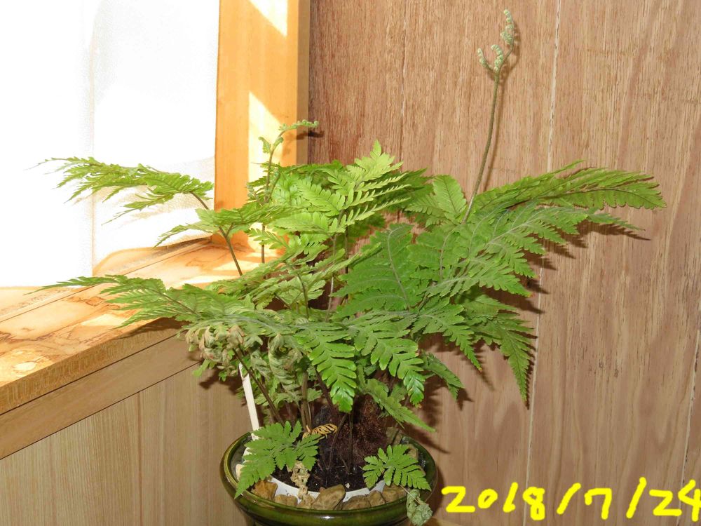 枝葉の枯れが進行してしまった金毛狗。去年の今の時期は、こんなに青々としていました。このときより1年経ちますから、やむなしなのかな。よくガンバったなって思います。