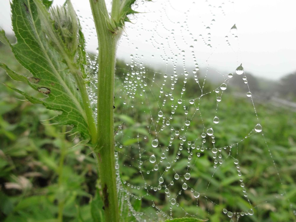 アザミと蜘蛛の糸についた水の粒