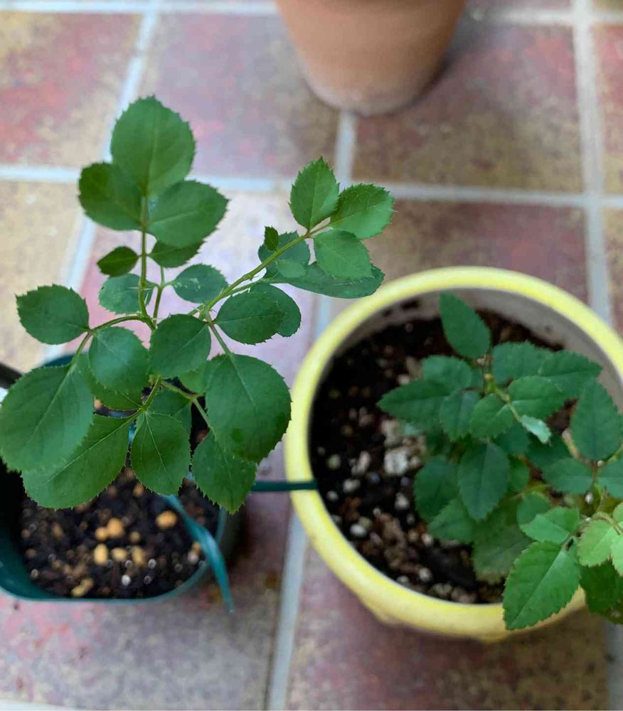 左の🌹はやっと!5枚葉が出てきました(^ ^) 冬越し出来るよう少しでも大きくしたいです♬