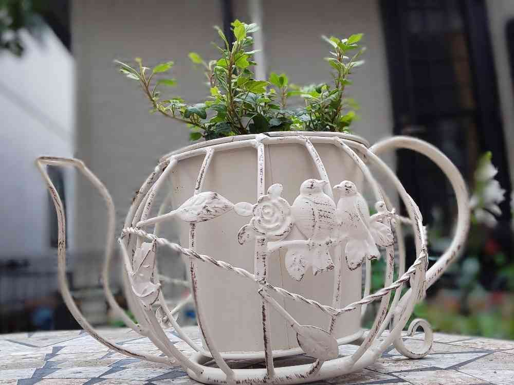 お休み中に見つけたティーポット型のプランターにヘデラ ダックフットを植えてみました🌿