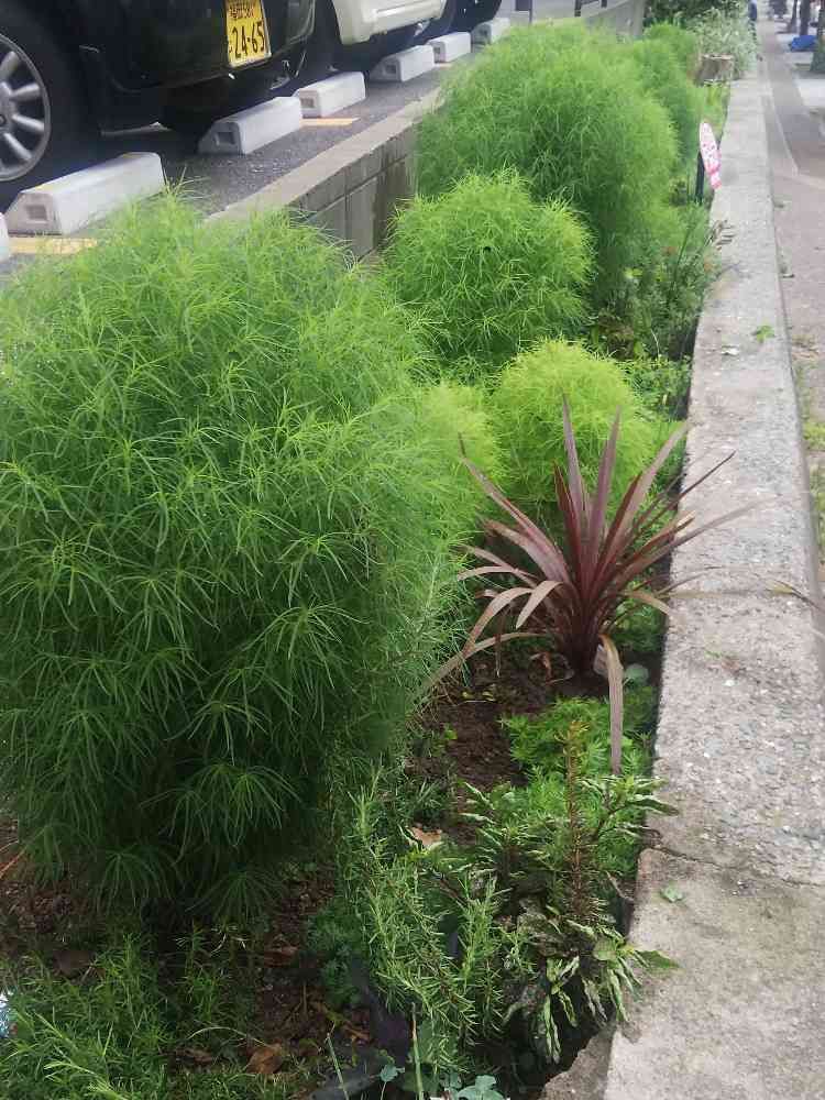 新しく移ってきた20m位の花壇で大きく育ってくれているコキアとその仲間たち!