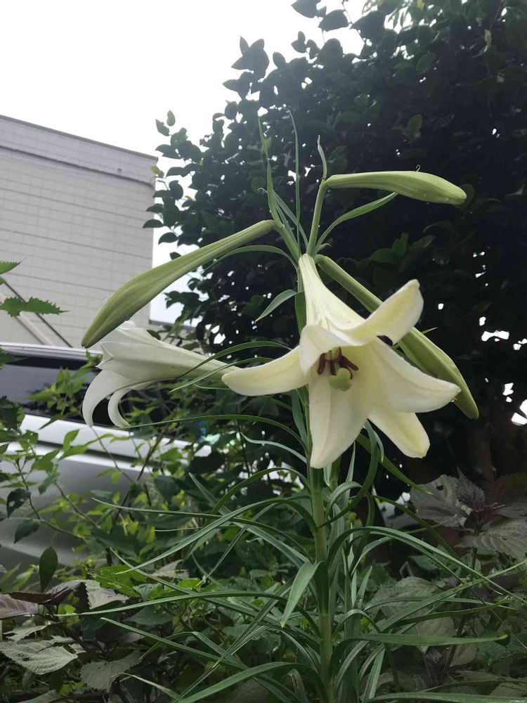毎年駐車場のブロック塀とモルタル床の隙間に生えてきていたユリ。何ユリか調べたことなかったけど、今年は庭のあちこちに出まくってる。野菜植えたい所のはかなり抜いたが、まぁいいかで残した場所は咲き始めた。