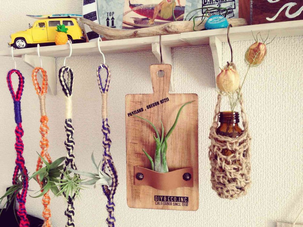 エアープランツプラハンズラッと並べても可愛いですよ😊太めの麻で編んだ方がボリューム出るかもですね👌