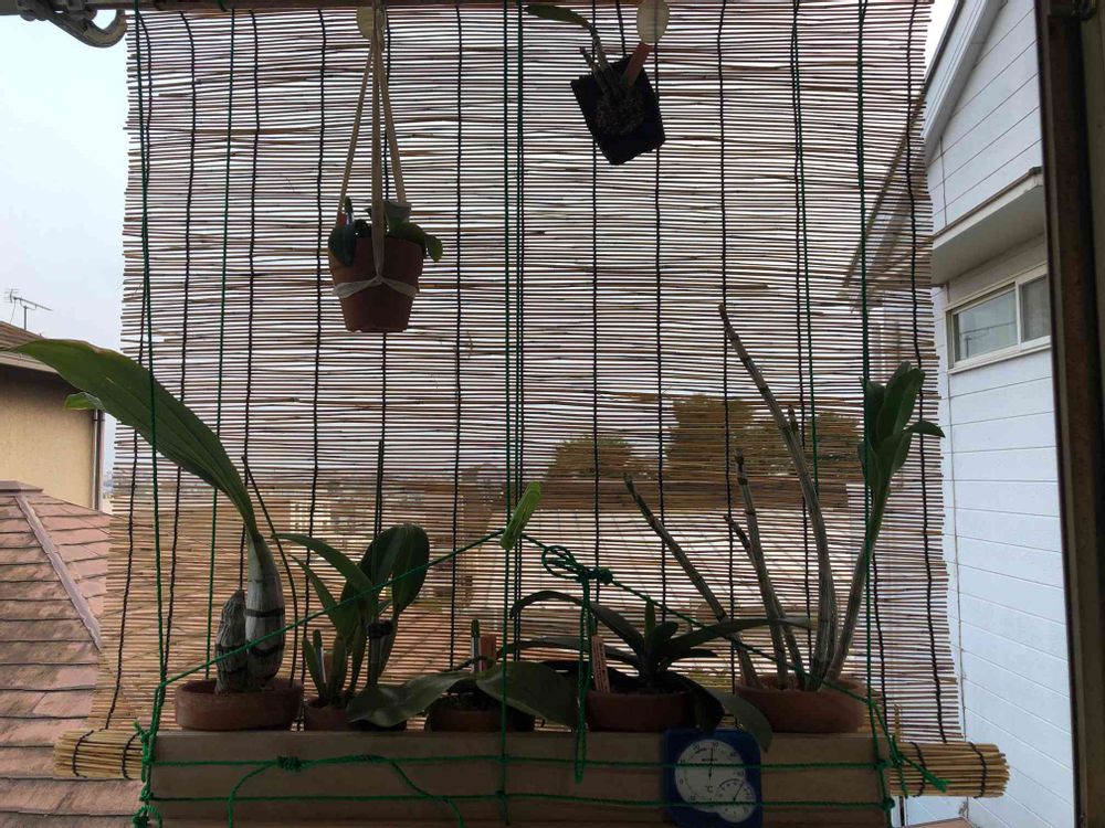 遮光ネット下の物干に ぶら下がり隊してます🌱🌱🌱