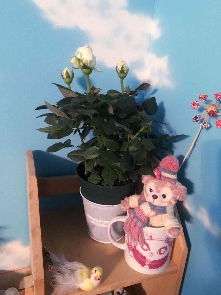 欲しかったミニバラのホワイトが我が家にやってきました☆*。