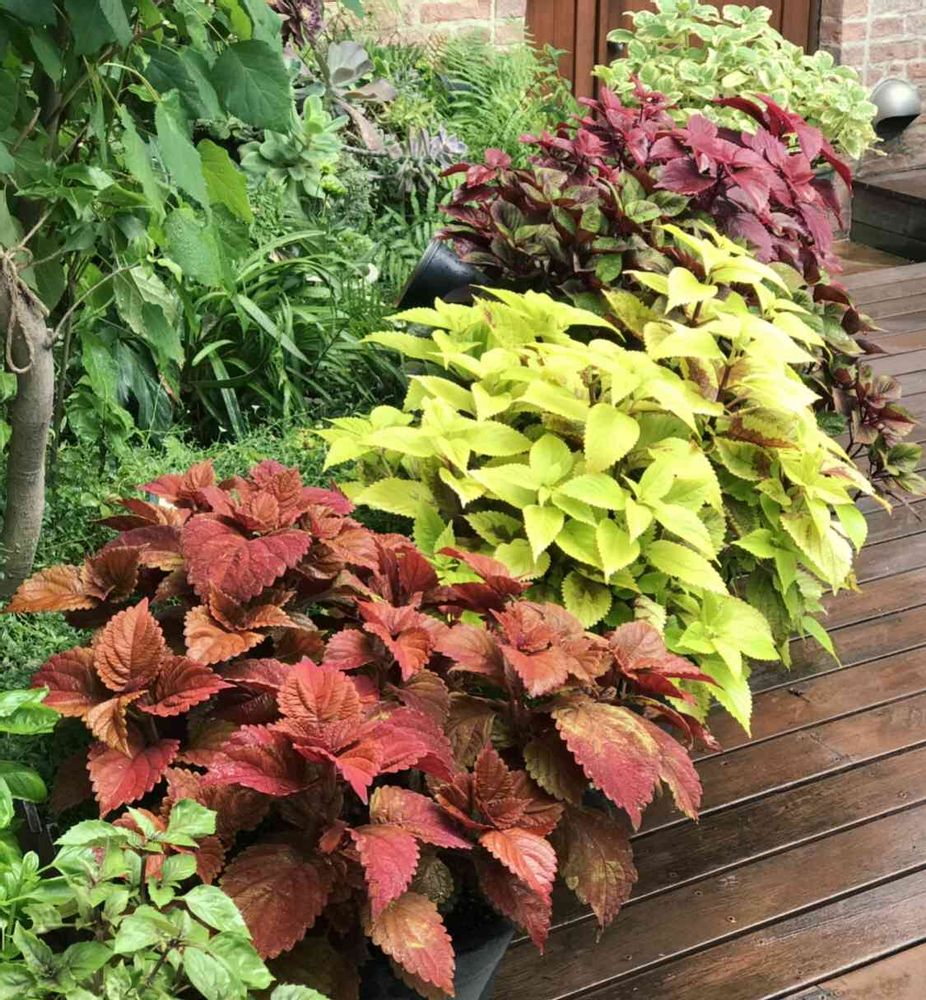 6月頃植えたコリウス 達、ミッドナイトグリーンは何故か最近見ないので 毎年苗更新、後はお馴染みの栄養系コリウス です。