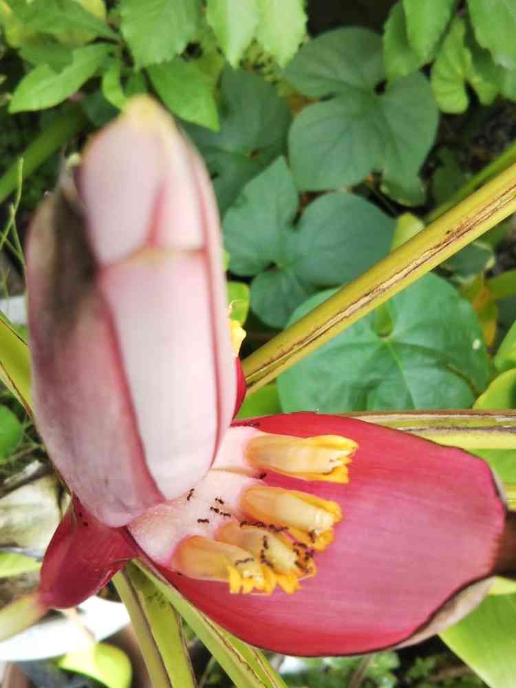 ミニ🍌の花にちっこい蟻が沢山来てます。虫媒花ですね😉