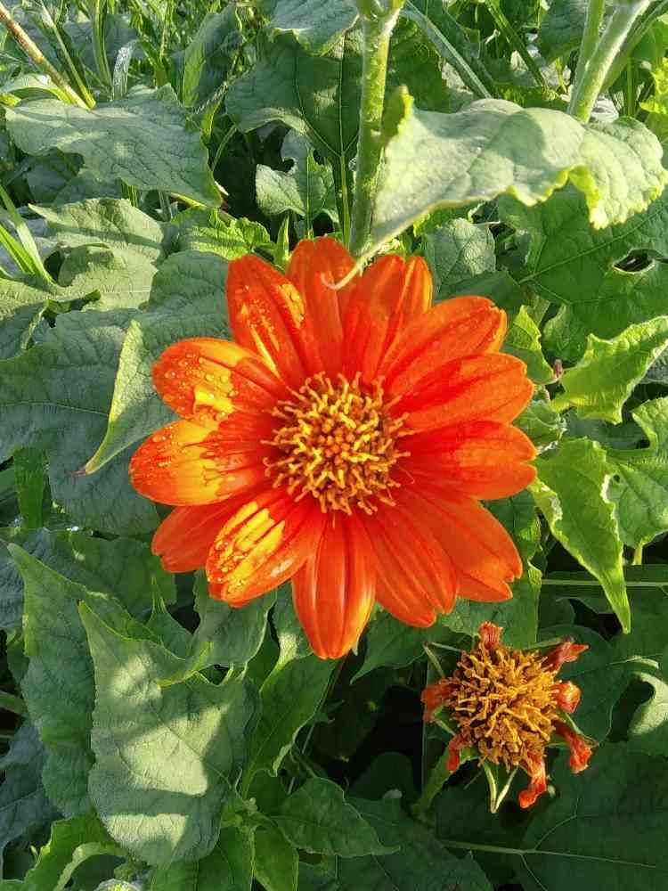 今朝 散歩中に咲いていた花。メキシコひまわりも好きな花。オレンジなのにひまわり?