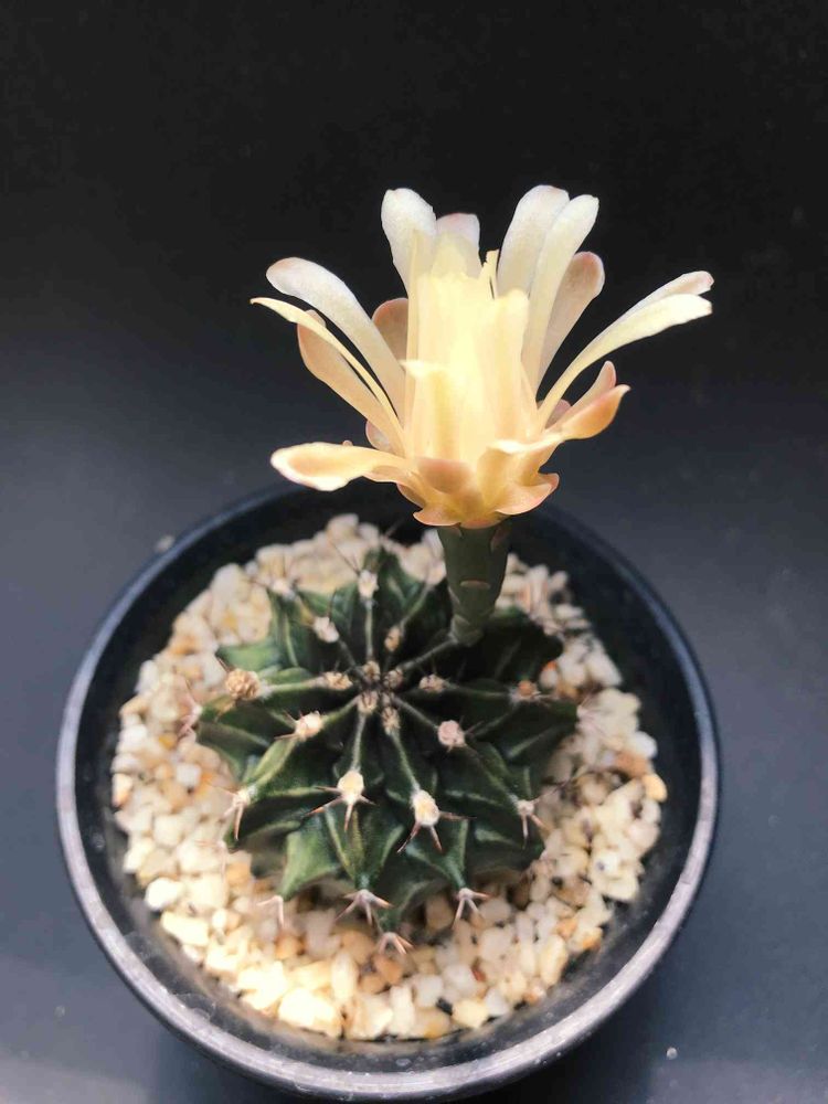 繊細な淡い黄色花です。つぼみは淡い黄緑色。パッとしないけど味があるそんなサボテンです(๑′ᴗ‵๑)