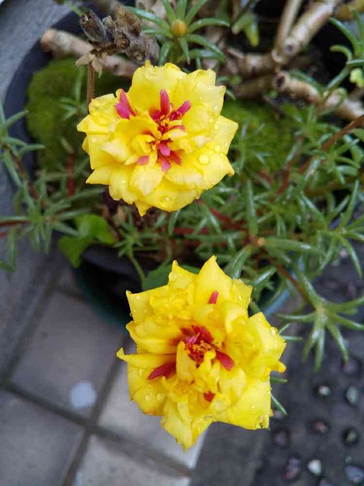 こぼれ種で他所様の鉢に咲いた八重のマツバボタン💛