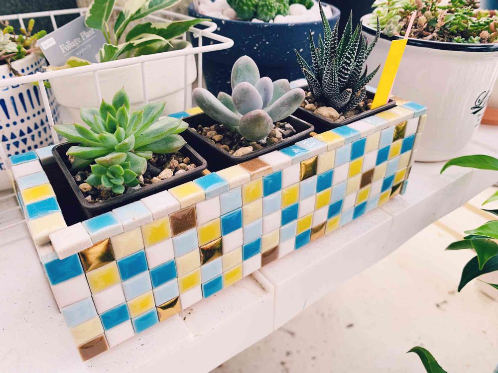 DAISOのミニ観葉植物が入ってる容器がちょうどスッポリなので、植え替えてセットしました😆🌸🌸