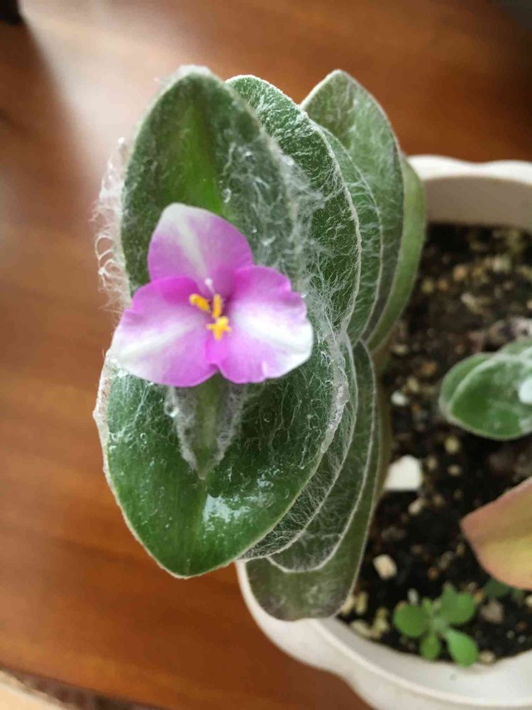 最初にこのpic見たときにあれ?この子、うちにもいる💗って思って過去pic捜したの。去年の10月に私も近所のお友達から貰って紫の露草に似た花が咲いたの。トラディスカンティアシラモンタナって名前で別名白雪姫👸って記してるわ😅