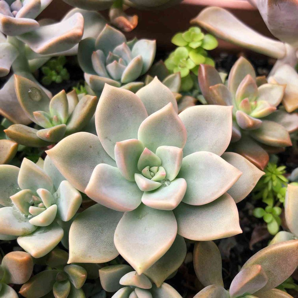 たぶん薄氷の葉挿しっ子😺うっすらピンクが可愛いらしい💕