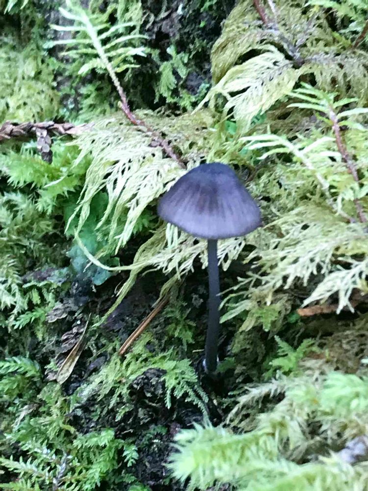コンイロイッポンシメジは非常にユニークな黒みがかった青色をしたキノコでこのような色をしたキノコは数少ないと言われていますが、