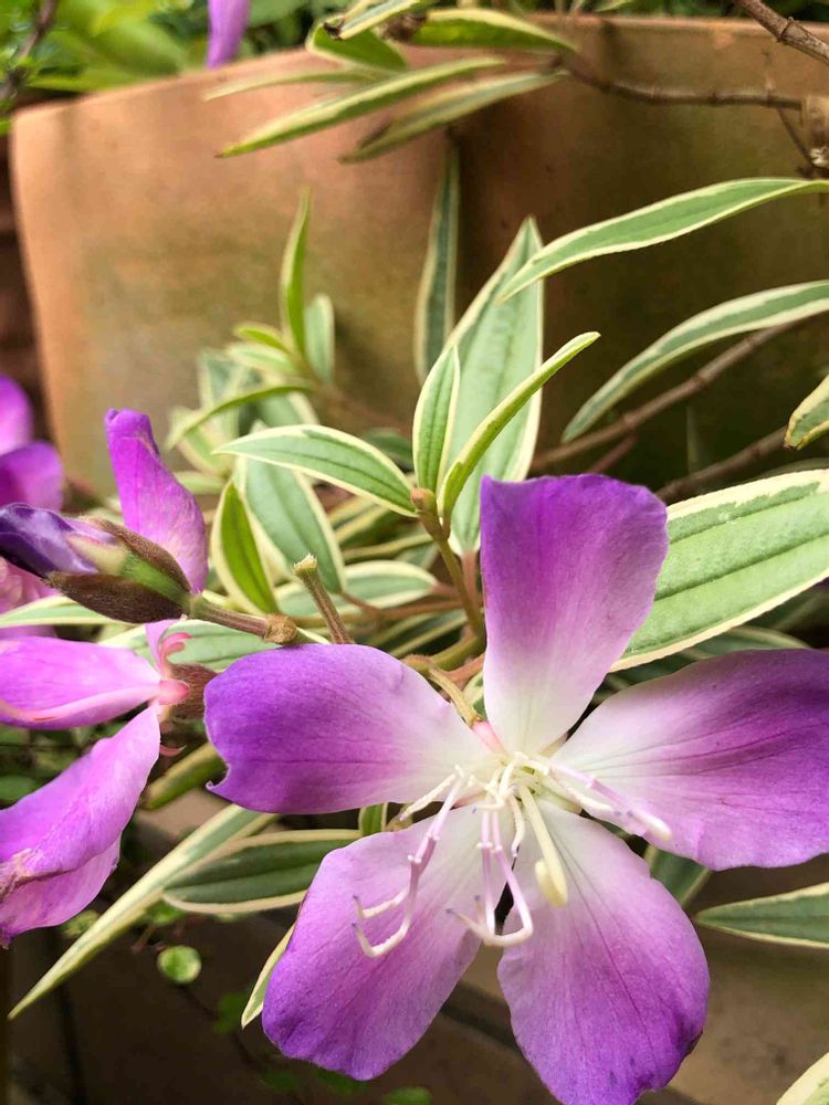 斑入りの葉っぱと明るい紫のお花が可愛い子です😍😍😍