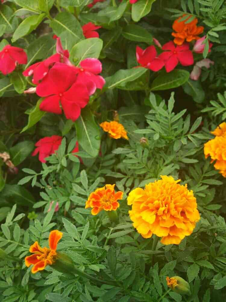 夢13さんの広い庭,ニチニチソウ,マリーゴールドの投稿画像