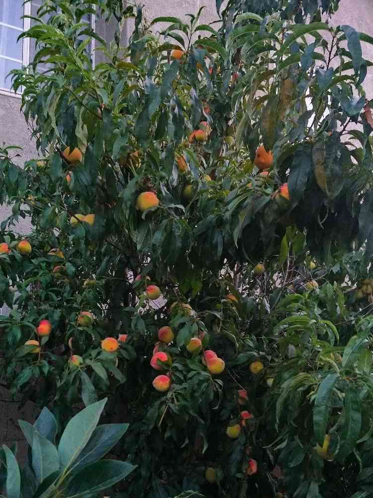 我が家の🍑の木、「ジェームズ&ザ・ジャイアントピーチ」という品種名でしたが、🍑はジャイアントじゃないけど木だけはジャイアント😅。半分未だグリーンで収穫出来ないんですが、木の下には半分囓って捨てた🍑がゴロゴロ。