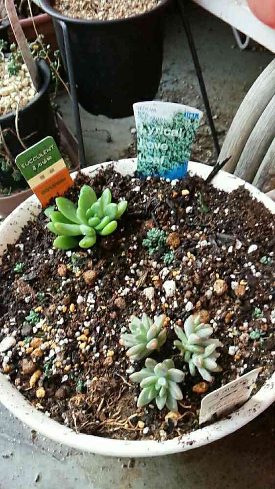 GreenSnapでは多肉の寄せ植えがメインみたいなのでセダムの春萌とグラプトペタルム属の愁麗を買って植えてみました。
