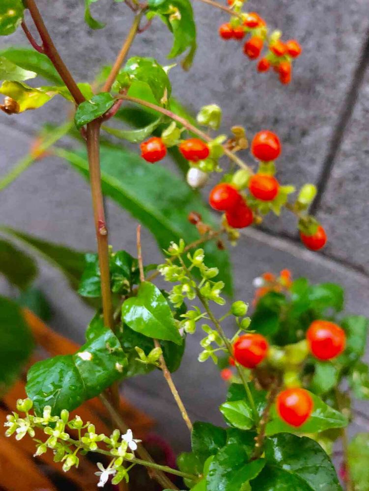 ☀️暑さが和らいだ途端、あっという間に 白い小さな花 ✻*॰¨ が咲き、可愛い橙色の実🧡をつけたジュズサンゴ ⚫︎.•♪