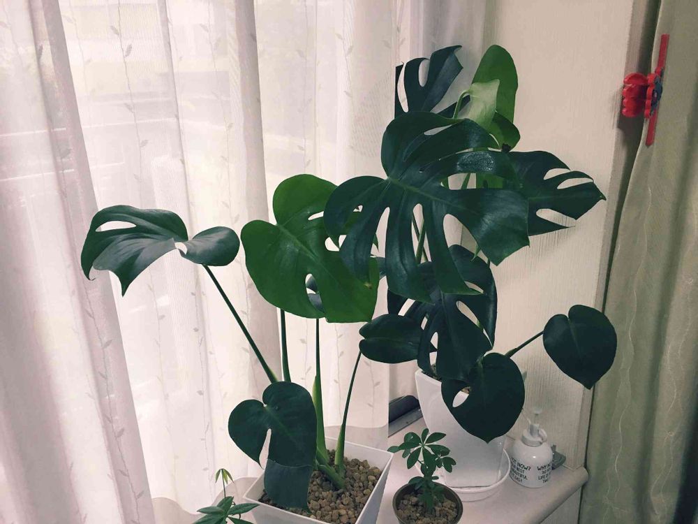 ヌスヌスヌスさんの窓辺,パキラ,モンステラの投稿画像