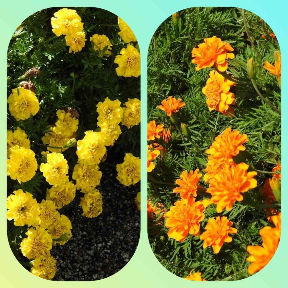公園⛲の花壇で綺麗に🌸咲いている❗マリーゴールドの花🌸