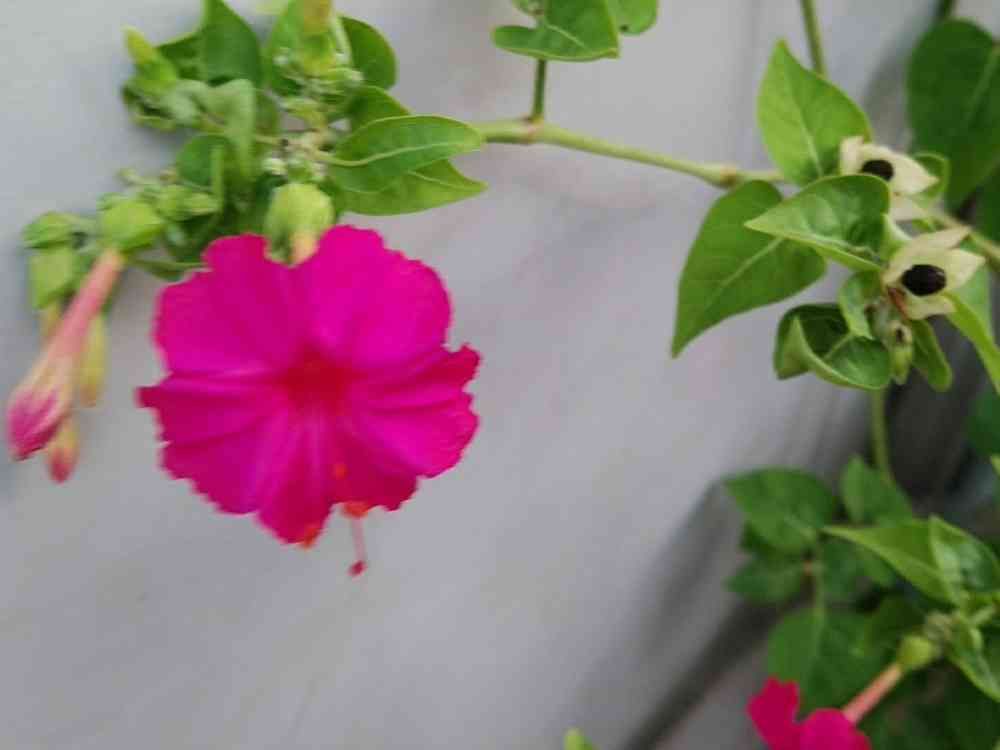 白粉花の花と👉に種子の黒色同時に撮れました。