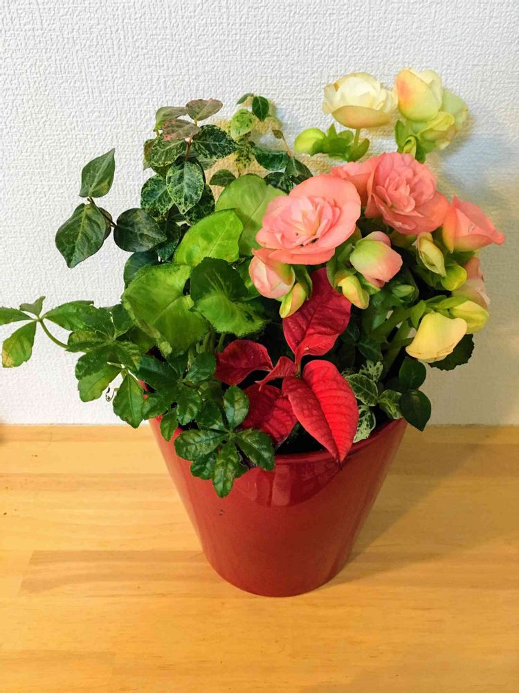 クリスマスアレンジのユーファルビアがダメになったので昨日買ったベゴニアで仕立て直し✨