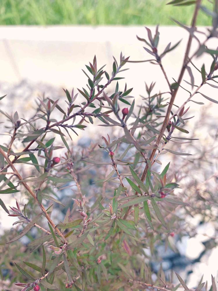 そうなんです!葉の色とのコントラストがかっこいい👀✨と以前、満開の株を見て名前をメモっていたギョリュウバイを小さな株からお迎えしました。ただ、葉っぱだけの状態だとスモーキーすぎてほんとに全然分からなくて(笑)