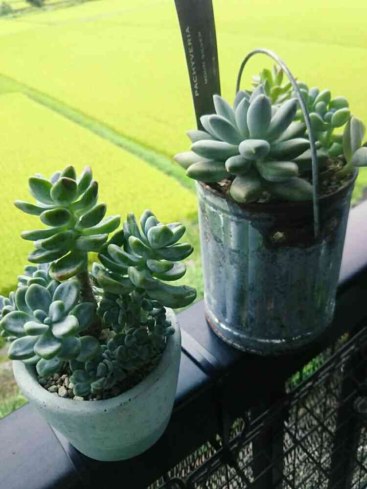 多肉寄せ植え,田んぼをバックにの投稿画像