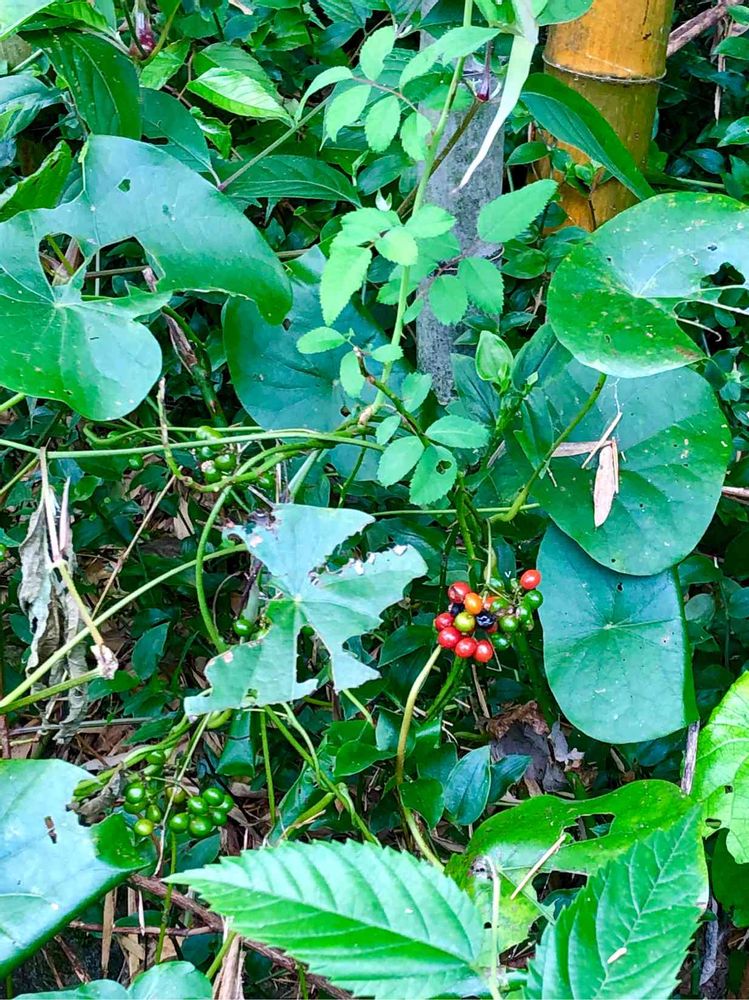いろんな蔓や葉っぱがわちゃっとからまって茂っているのでよくわからない💦