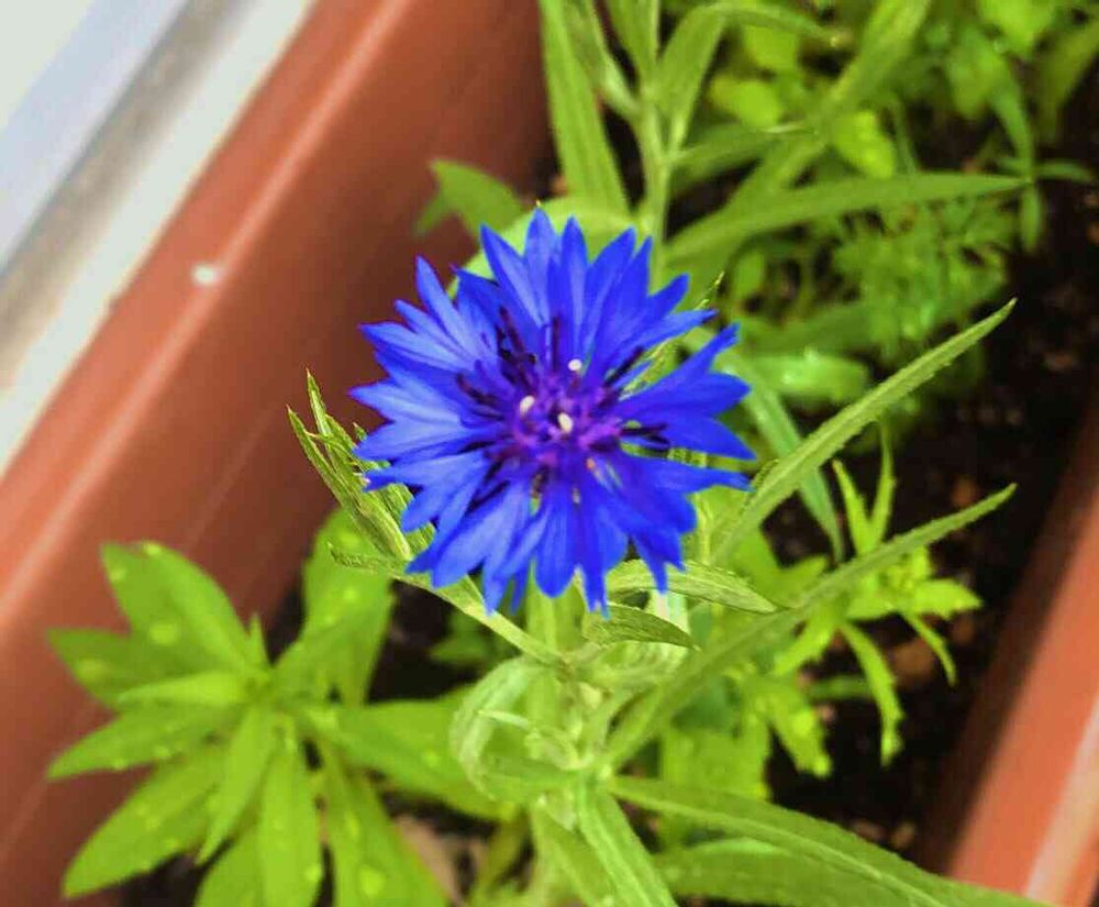 ミックスフラワーというタネを植えて綺麗に咲いてくれた青い花