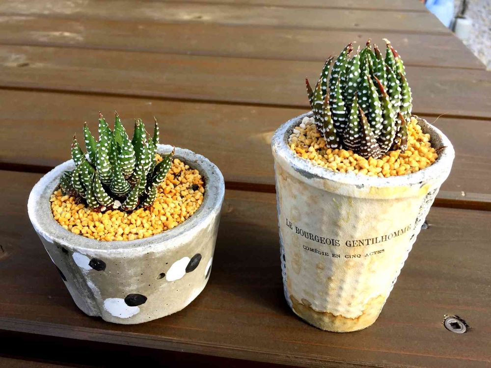 ハオルチア属の十二の巻(だったと思う)🤗自作モルタル鉢に植えました👻