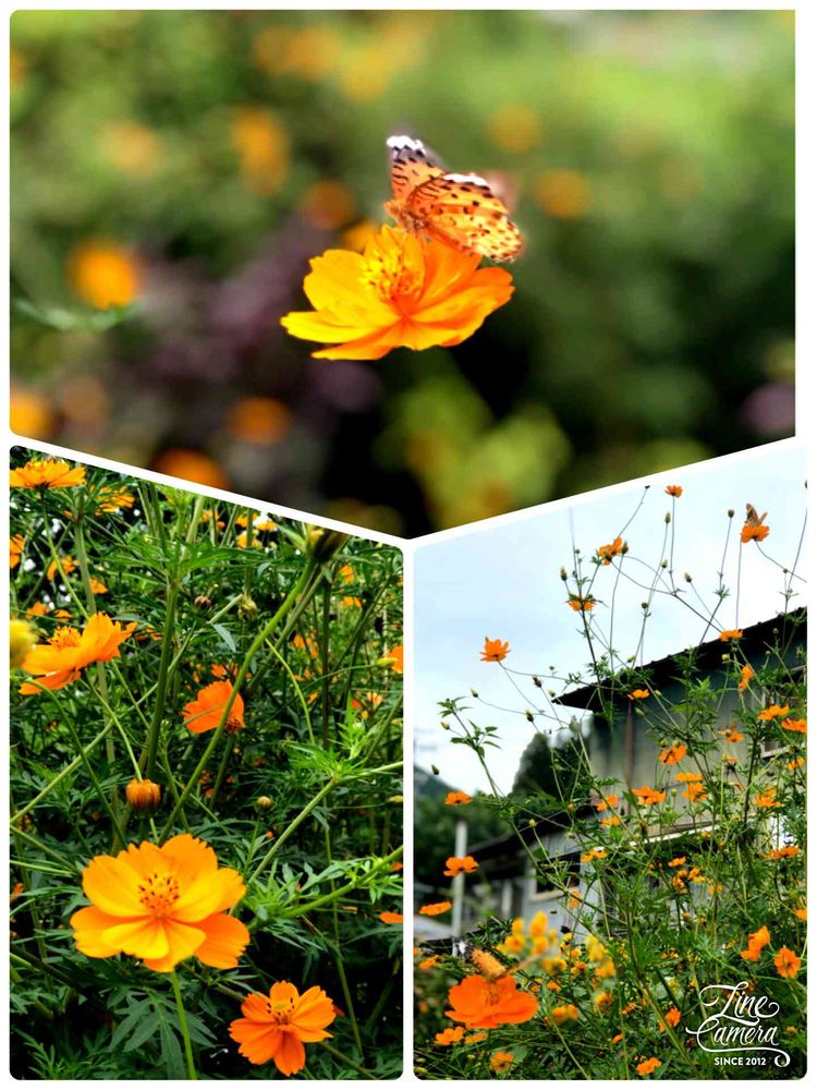 仕事場の近くにこんもりと咲いたキバナコスモス❣️ チョウチョや🐝さんが仲良く蜜を集めに来ていました