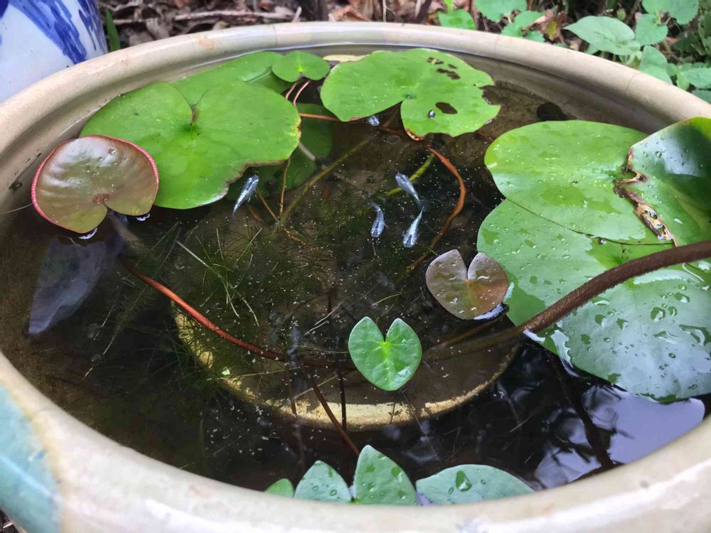 小さな庭,睡蓮鉢,メダカの投稿画像