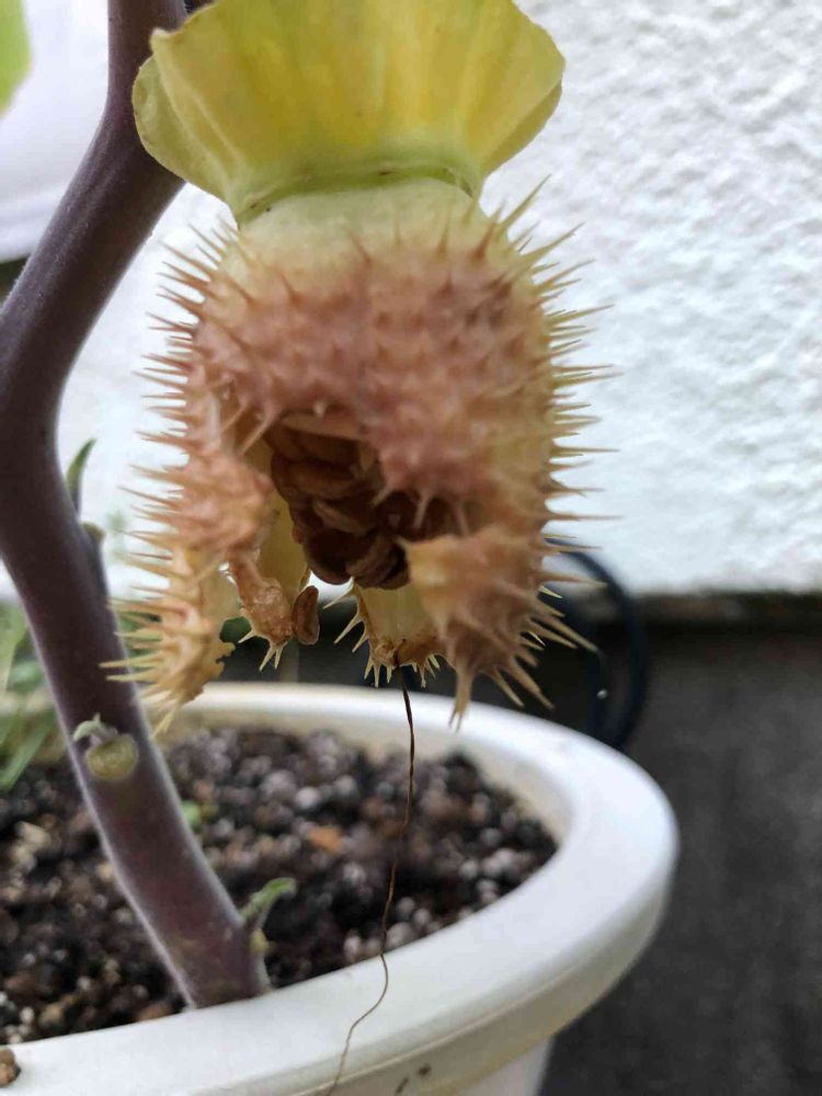 朝鮮朝顔て迫力ある実の割れ方するって、面白い😀😀😀