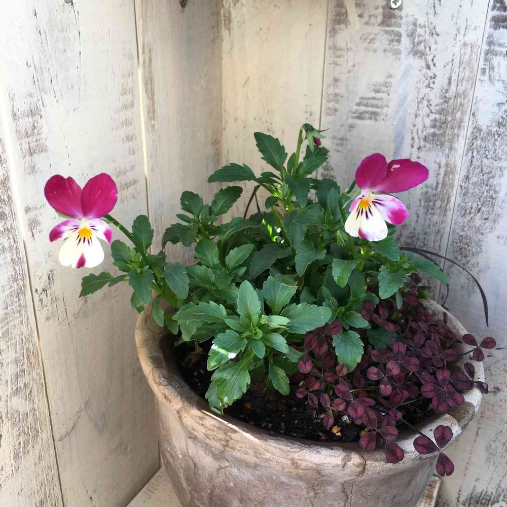 バルコニー/ベランダ,ビオラ,見元クローバー 赤系の投稿画像