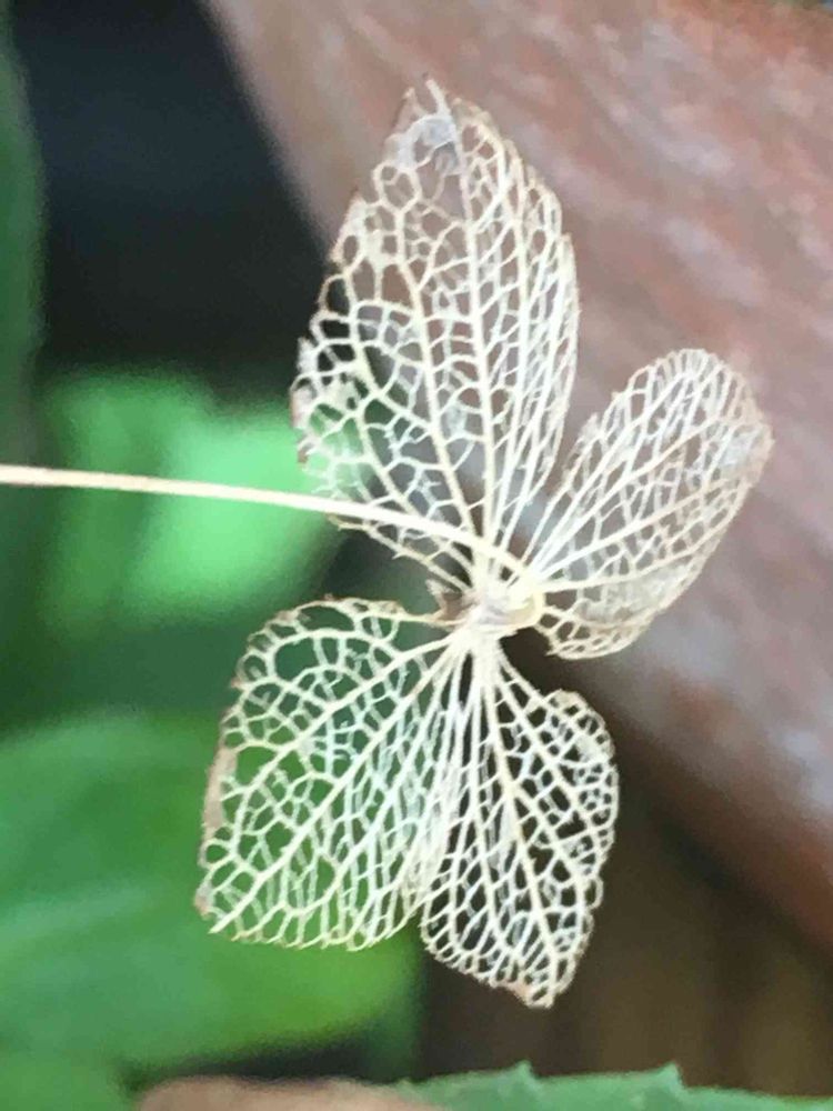 ガクが枯れて葉脈の部分だけが残っています。
