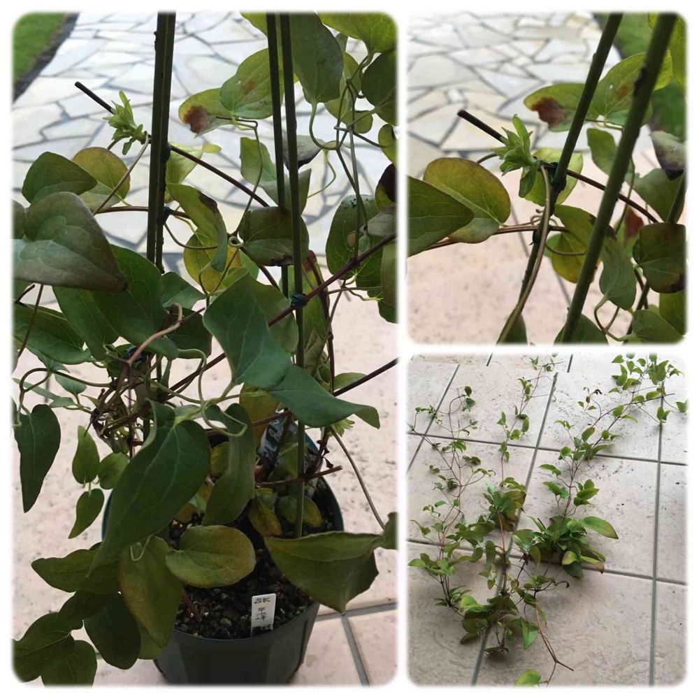 クレマチスの早池峰。二番花が終わり、花の一節下、蔓の1/3くらいと強弱をつけて剪定。最近、また新たに芽が出てきましたが…強めに剪定した蔓のみ。フェンスから移動させたかったので今更ながら残した蔓も1/3程まで切り、誘引し直しました✨