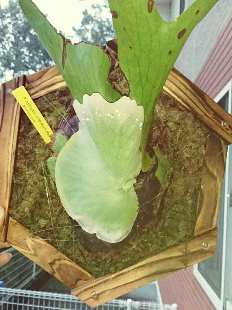 雨に打たれて下の貯水葉変色したかな😨