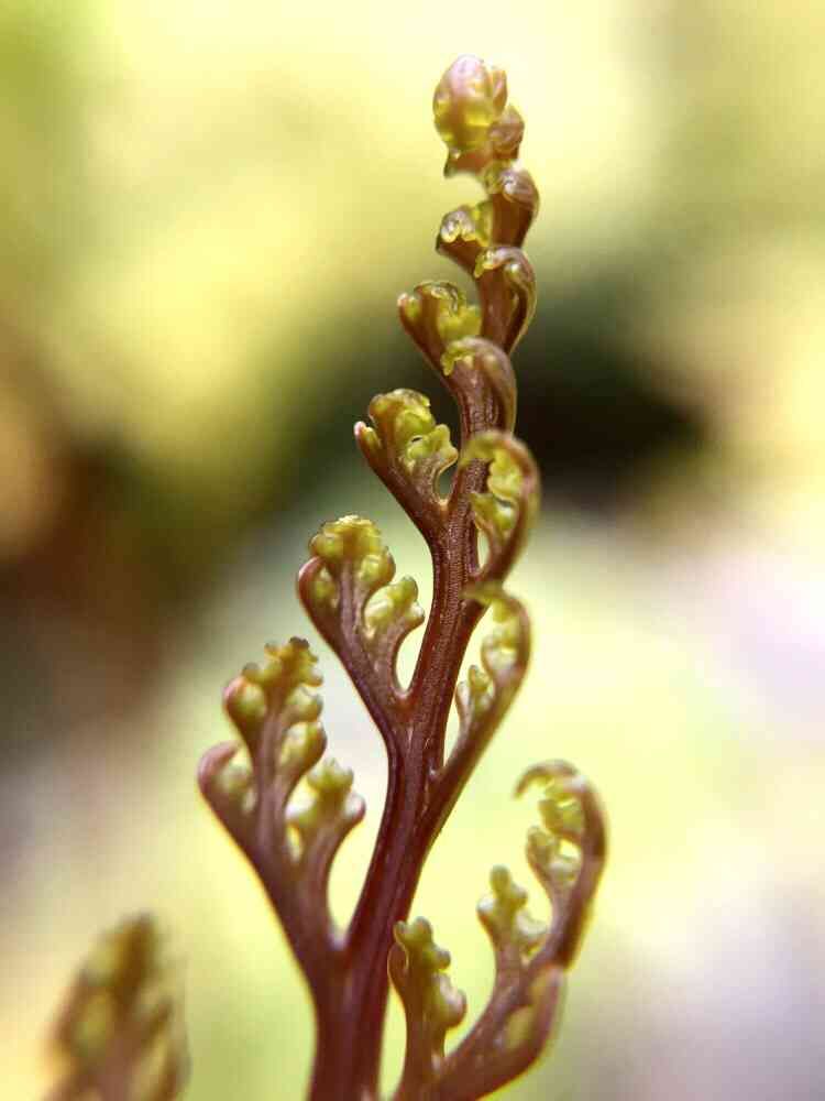 玄関の前に作った水琴窟の上に鎮座しているシノブの新芽。