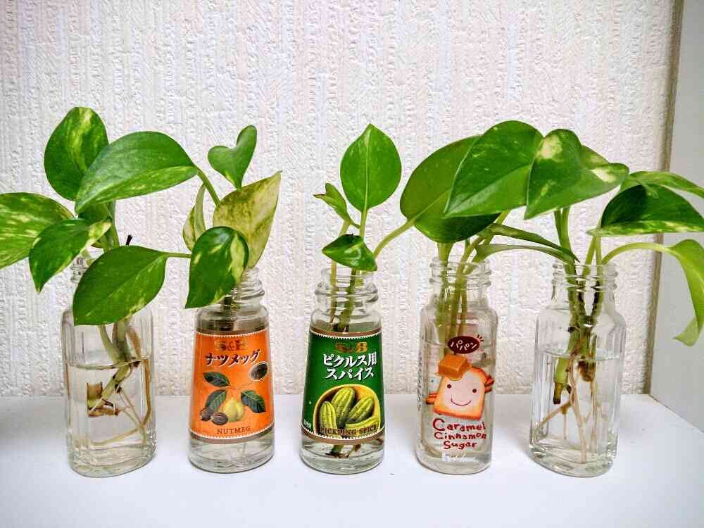 さんおはようございます!キッチンには小瓶がいっぱいですよね♪調味料瓶も洗ってラベルをはがすと結構いいかたちしてますよ♪