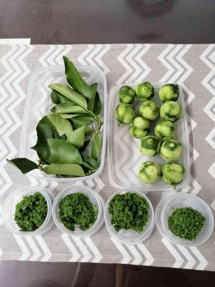 青柚子は皮をおろし器ですって、青唐辛子は種を取って細かく粉砕(手袋、メガネ、マスク必須)、あとは塩投入してかき混ぜたら完成‼️
