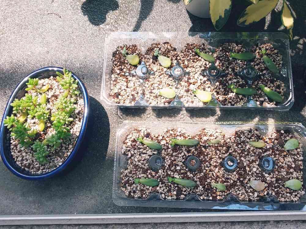 それ以外の葉ざしは鉢皿から卵のパックに植え替えました