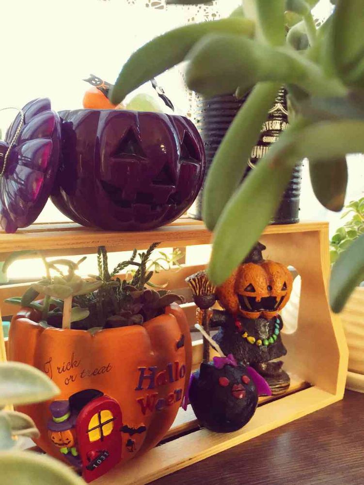 お部屋の多肉コーナーを精一杯のセンスでハロウィン仕様に。笑