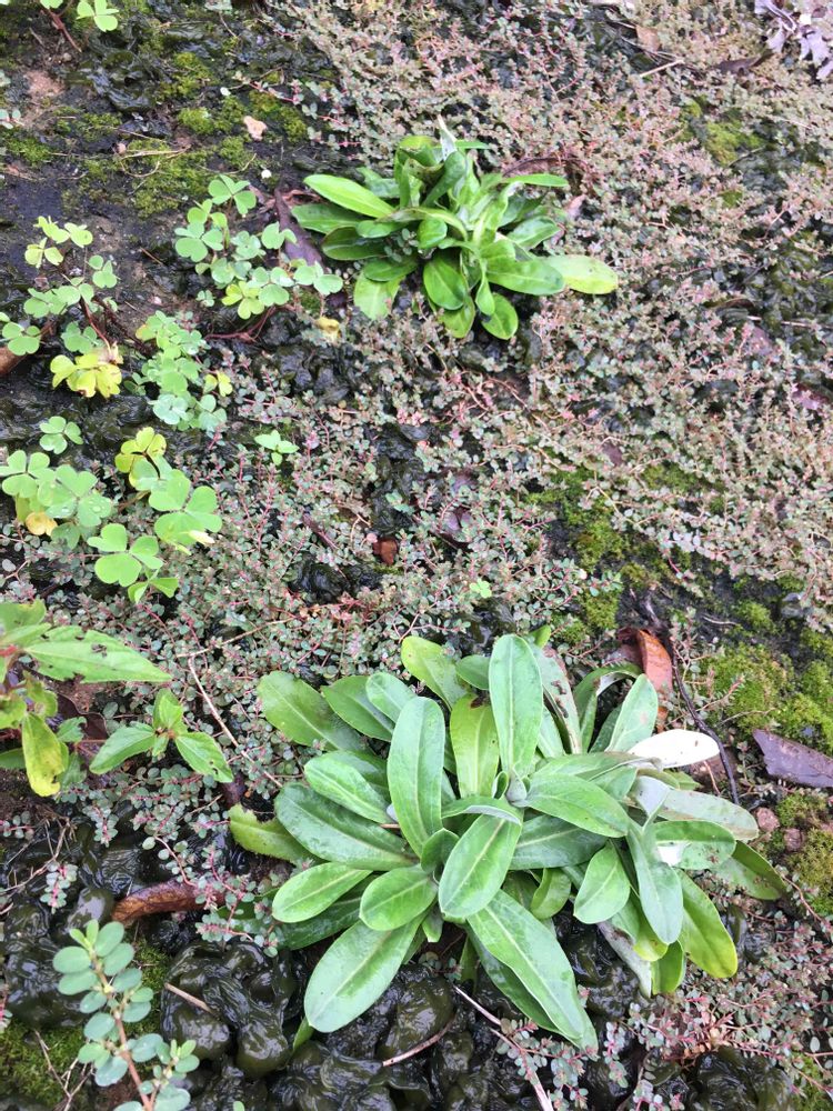 中心・下側の 全体的に丸い感じの植物の名前がわかりましたら 教えて下さい。雑草だと思います。葉っぱの 裏側は 白いです。よろしくお願い致します。