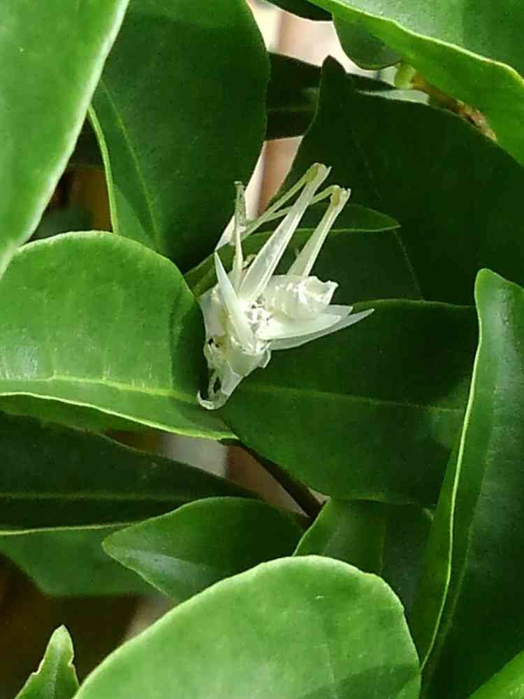 ニオイバンマツリの葉にバッタの抜けがらが…😞💨